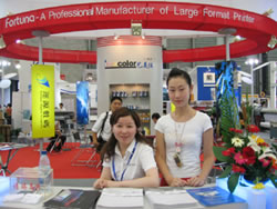 我公司展位位于2號(hào)館內(nèi), 總展出面積200多平米,主要展出了戶(hù)外高精度噴繪機(jī)——水星噴繪機(jī)、YSL雷鳥(niǎo)/颶風(fēng)設(shè)備,戶(hù)內(nèi)寫(xiě)真機(jī)——MIMAKI系列,雕刻機(jī)系列——雕霸雕刻機(jī)、利得寶激光雕刻機(jī),還展出了藝美佳耗材——imacolor藝美佳墨水、imacolor藝美佳相紙系列。